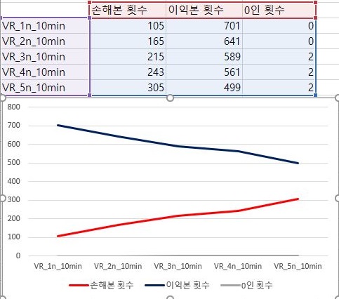 그리고 나서 다음으로 볼 수 있는 것이 바로 이익과 손해의 합계인데, 일단 이익보는 종목의 갯수가 줄어든 것에 비해서 급격하게 이익의 합계가 줄어들고 있으며, 손해의 합계는 기울기가 완만하지만, 그래도 꾸준히 증가하는 것을 볼 수 있었습니다. 이렇게 해서 일단 첫 작업이 마무리 되기는 되었지만, 이건 아직 시작일 뿐 입니다.