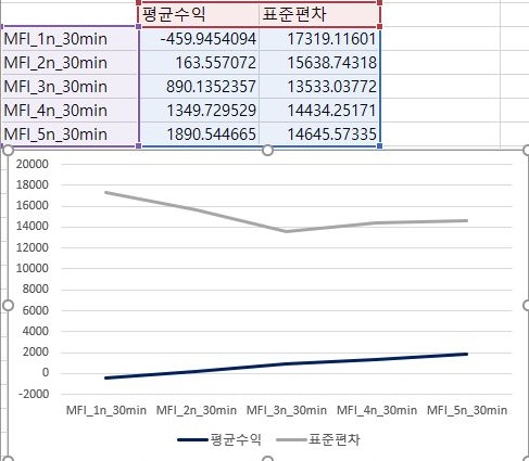 지난번 포스팅까지 어떻게 MFI지수를 기반으로 해서 매도/매수 룰을 만들어 보았는데, 아직까지는 10분봉 캔들챠트 데이터 베이스만 적용했습니다. 여기서는 이제 30분봉 캔들챠트 데이터 베이스에서 적용한 결과를 가지고서 한번 작업을 해 보아야 하는 과제가 남아 있어서 이번 포스팅의 내용으로 해서 올리고자 합니다.