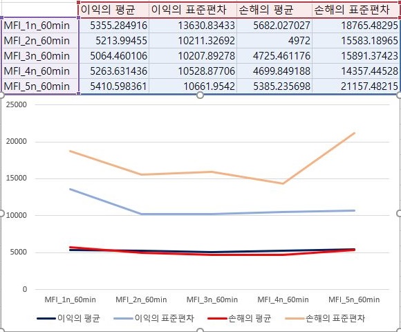 그리고 나서 다음으로 볼 수 있는 것으로는 이익의 최대치와 손해의 최대치를 한번 비교하는데, 어찌된 셈인지 여기서는 마지막으로 가장 빡빡한 조건에서 이익의 최대치가 가장 큰 것을 확인할 수 있었습니다.
