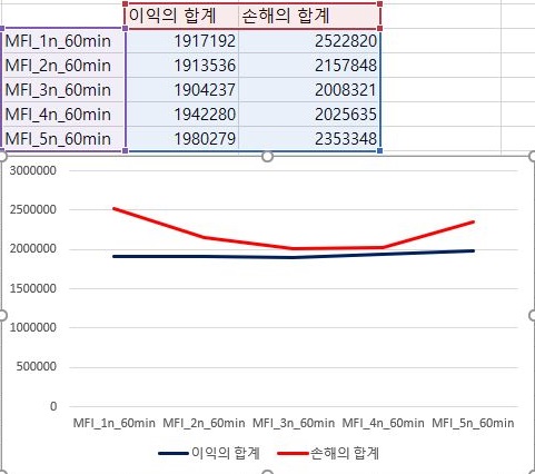 그리고 나서 다음으로 볼 수 있는 것으로는 이익의 최대치와 손해의 최대치를 한번 비교하는데, 어찌된 셈인지 여기서는 마지막으로 가장 빡빡한 조건에서 이익의 최대치가 가장 큰 것을 확인할 수 있었습니다.