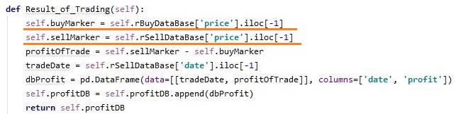 그리고 나서 다른 py파일에 가서, 매수와 매도의 가격을 따로따로 기록을 하는지 안 하는지를 한번 보도록 했습니다. 일단 여기서는 pandas의 데이터 프레임을 생성해서 날짜까지 기록을 하고 있는 것을 확인할 수 있었습니다.