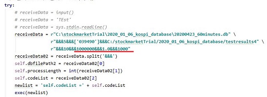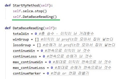 그리고 나서 위 스크린샷에서 볼 수 있는 것처럼 일단 초기 자본금 - 정확히는 계좌의 현금에다가 이익을 더하기 해서 작업이 진행이 되는지 여부를 알아 보도록 합니다.