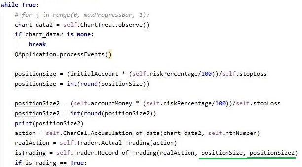 그리고 나서 계산이 되었는 position size를 반영하기 위해서, 일단 위 스크린샷에서 볼 수 있는 것과 같이 우선 메서드에 지정을 해 주도록 합니다.
