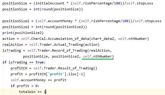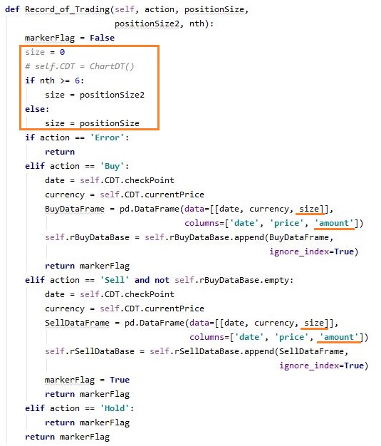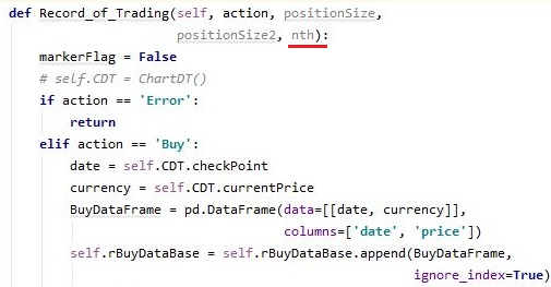그래서 이렇게 하는 것으로 이제 nth가 면번째인가를 확인해서 position size가 1번인지 2번인지 측정을 하도록 합니다. 그리고 나서 이 데이터를 매수/매도할 경우에 반영하도록 합니다.