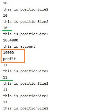 이렇게 해서 다음으로 거래를 하는 경우에 속하게 되면, 위 스크린샷에서 볼 수 있는 것과 같이, 일단 position size로 결정이 된 거래를 할 주식의 양에 대해서 위 스크린샷에서 볼 수 있는 것처럼 반영이 되도록 만들어 줍니다.