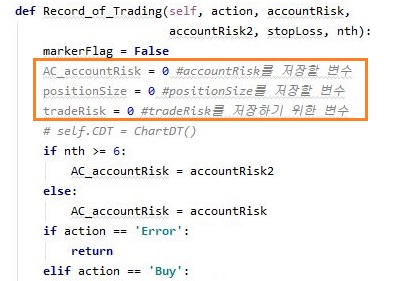그렇게 해서, 일단 들어가는 데이터의 이름도 이전에 있었는 positionSize라고 하지 말고, 헷갈리지 않도록 위 스크린샷처럼 제대로 account risk를 감당하기 위함으로 바꾸어서 불러 주도록 합니다.