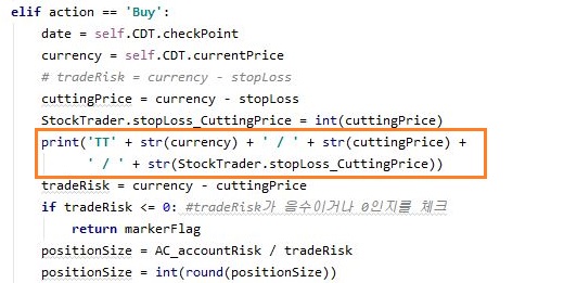 그래서 print함수를 사용하는 경우에는 위 스크린샷에서 볼 수 있는 것과 같이, 일단 매수하는 단계에서 부터 제대로 계산이 되는지 알아보도록 합니다.