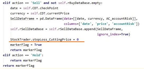 이렇게 해서 나오는 결과를 살펴보면, 일단 제대로 계산은 되기는 되었으며, 다음으로 볼 수 있는 것은 이제 손절매가 되고 나서는 얇짤없이 그대로 매도에 들어가 버렸다는 것을 알 수 있었습니다. 일단 이렇게 해서 이제 손절매를 구현하기는 구현하는데 까지는 어느정도 성공은 한 듯 합니다.