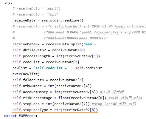 지난번 포스팅까지 어느정도 작업이 되기는 되었는데, 이번에는 다른 방식의 작업을 해야 하는 타이밍이 왔습니다. 다른게 아니라 이전에는 position size를 오해해서 %로 되어 있는 손절매를 할 수 없는줄 알았는데, 그게 아니었기 때문에 이를 위해서 필요한 작업을 해서, 먼저 부모 프로세스에서 이를 지정하면, 자식 프로세스에 이 정보가 전달이 되도록 만들어 주어야 합니다.