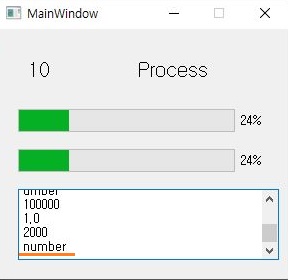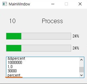이렇게 해서 다시금 확인을 해 보니, 위 스클니샷에서 보이는 것처럼 일단 퍼센트라고 표시가 되어 있는 것을 볼 수 있습니다. 이렇게 해서 부모 프로세서의 GUI에서 지정을 했는 내용이 제대로 자식 프로세스에 전달이 되는 것을 확인할 수 있기는 있었습니다. 이제 자식 프로세스에서 관련된 작업을 할 수 있도록 만들어 주어야 합니다.