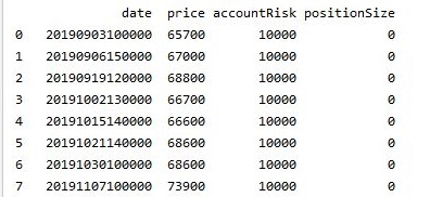 이렇게 해서 계산이 되기는 되었는데, 어째서 인지 모르겠습니다만, 왜인지 모든 position size가 0으로 나오는 기현상을 발견할 수 있었습니다.