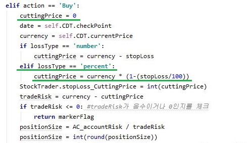 그리고 나서 이전에 없었던 메서드에서는 드디어 손절매를 위한 액수를 금액으로 지정이 되어 있는 것인지, 아니면 매수가의 %로 지정을 하는지에 대해서 한번 작업을 시작해 보도록 합니다.