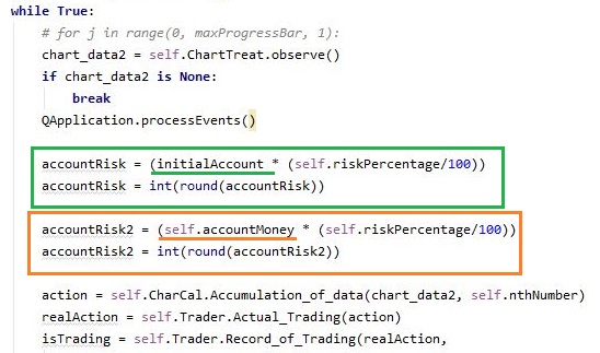 그리고 나서 다음으로 볼 수 있는 것으로는 일단 nth가 6 이상이면 변동이 되는 account risk2를 이용해서 position size를 결정하고, 그 미만이라면 고정된 account risk를 이용, 어떻게 해서 position size를 계산하도록 합니다.