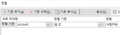 다음으로는 위 스크린샷에서 볼 수 있는 것과 같이 일단 정렬기능을 사용해서 한번 작업해 보도록 합니다. 일단 계좌를 기준으로 해서 다음으로는 내림차순으로 정렬했더니..........