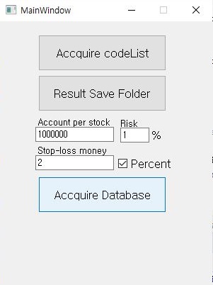 그리고 나서 다음 테스트를 시작하기 전에 역시나 기본적인 조건으로 초기 자본금 100만원으로 해서, 감당할 리스크는 1%로 하고, 손절매는 퍼센트로 해서 2%로 만들어 주도록 합니다.