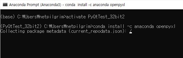 그래서 제대로 된 설치를 하기 위해서 일단은 conda install -c anaconda openpyxl 이라는 명령어를 사용하는 것으로 일단 작업을 하려고 합니다.