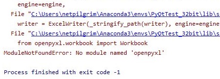 그리고 나서 작업을 시작해 보니까, 위 스클니샷에서 볼 수 있는 것처럼 어째서 인지 openpyxl이라는 모듈이 없어서 생기는 문제라고 할 수 있습니다.