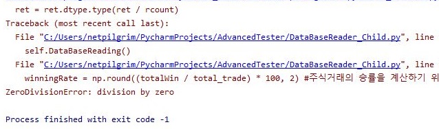 그런데 이번에는 어떻게 된 것인지 0으로 나누어 지는 에러가 나왔다고 해서 또 다른 에러가 뜨는 것을 확인할 수 있기는 있었습니다.