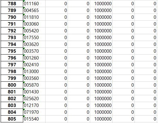 그리고 나서 마지막으로 일단 엑셀파일에 정리가 되어 있는 종목을 한번 보았습니다. 여기서 하나 알 수 있는 것으로는 일단 806개 종목에 대한 데이터가 제대로 다 들어갔다는 것을 알 수 있었습니다. 이제 이전보다는 조금은 더 편하게 데이터를 정리할 수 있을 것으로 보입니다.