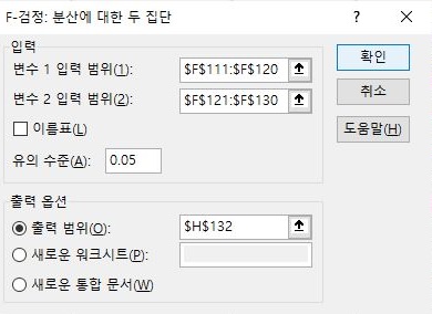 그래서 이번에는 위 스크린샷에서 등장하는 것과 같은 등분산 가정 두집단에 대해서 통계적인 검정을 해주는 작업에 들어가 보고자 합니다.