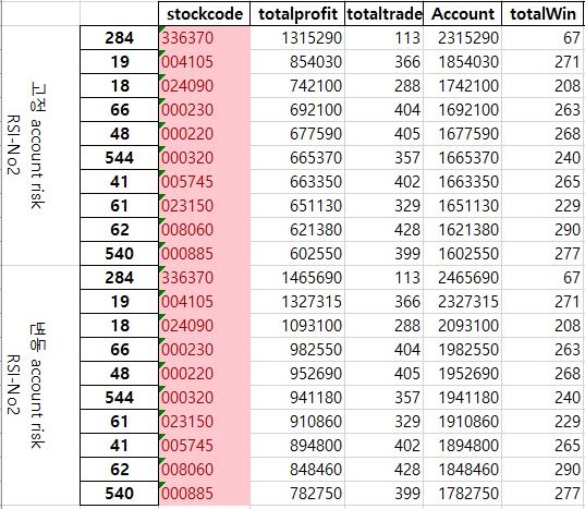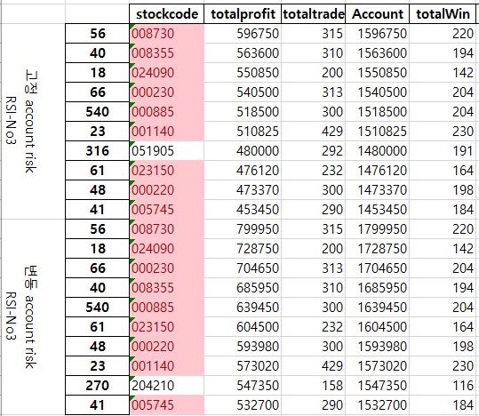 다음으로는 3번째 매도/매수 조건인 RSI의 2번째 널널한 조건으로 한번 결과를 정리해 보았습니다. 이 결과를 통해서 일단 무엇을 얻을 수 있을지는 아직은 모릅니다.