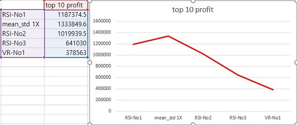 그리고 나서 이익만을 모아서 한번 비교를 해 보았습니다. 이렇게 했더니, 우선 확인할 수 있는 것으로는 위 스크린샷에서 볼 수 있는 것처럼 일단 2번째 조건인 이동평균선과 1배 표준편차가 가장 이익이 많은 것으로 나오고, 나머지에서는 그게 줄어드는 것을 볼 수 있었습니다. 이제 변동 Account Risk가 맞는 듯 합니다만, 여기서 다음 스탭은 어떻게 해야 할지 조금은 생각해볼 필요성이 있어 보입니다.