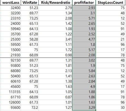 그래서 다음으로 알아보고자 하는 것이 바로 profit factor라는 수치로 이 수치 역시 비율이 높으면 높을 수록 좋은 대접을 받기는 받습니다.