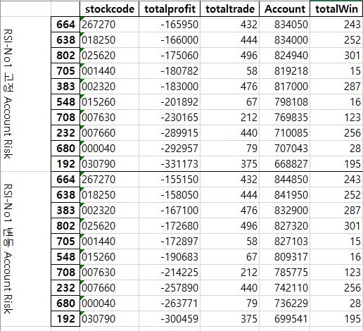 먼저 위 스크린샷을 보시면 알 수 있듯이 일단 bottom 10을 한번 작업해 두도록 했습니다. 그렇게 해서 일단 total profit이 -가 된 종목들이 있는 것을 확인할 수 있었습니다.