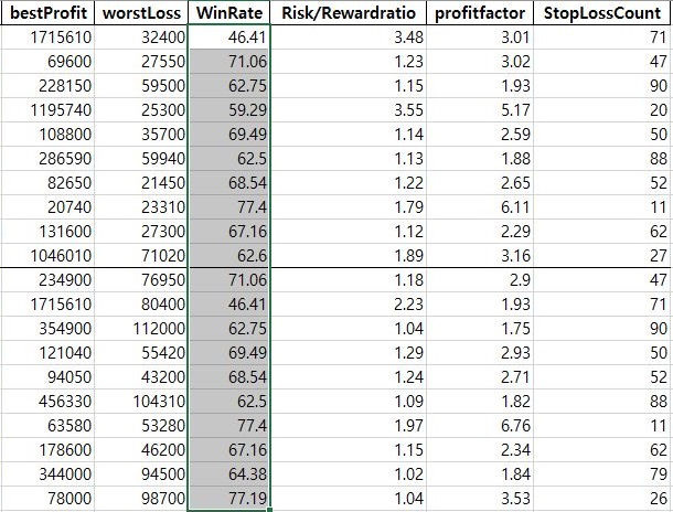 그런데 여기서도 T 검정 결과 유의차가 없다는 것이 나왔습니다. 즉, 조금 더 변동 Account Risk의 승률이 좋기는 해도 둘이 큰 차이가 없다는 결론이 나오는 것을 확인할 수 있었습니다. 이래서야 단순히 이 조건에서도 더 많은 수익을 낸 것 외는 없다는 것만 알 수 있었습니다.