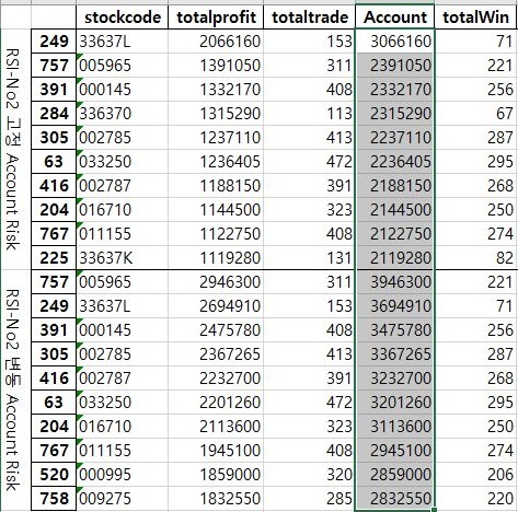 이제 3번째 조건인 RSI지수를 기반으로 해서 나온 매도/매수 룰에서 2번째로 널널한 조건에 대해서 한번 알아보러 가야 할 타이밍이 되었습니다. 여기서는 계좌의 최종 금액을 가지고서 한번 작업에 들어가 보고자 합니다.