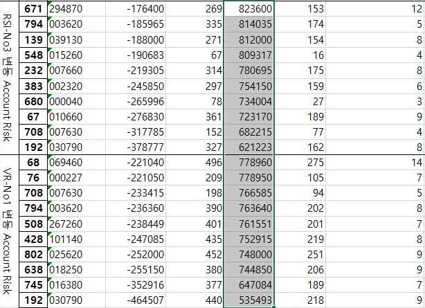 결국 마지막 결과를 정리한 그림인데, 맨 위에 있는 이동평균선 - 표준편차 1배수가 제일 많은 손해를 보았다가 아니라 제일 적은 손해를 보았고, 그 외에 나머지는 거의 비등비등한 손해를 보고 있었다는 것을 확인할 수 있었습니다. 이렇게 해서 길고도 긴 이 데이터를 처리하는 과정을 다 확인하는 데 성공했습니다.