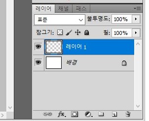 그래서 원래라면 추가되는 모양의 도형이 있는 레이어 대신, 위에다가 하나 더 레이어를 추가시켜 보도록 합니다. 다시한번 말하지만, 여기서는 레이어 1에 아까 그렸던 원이 있습니다.