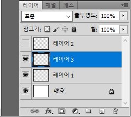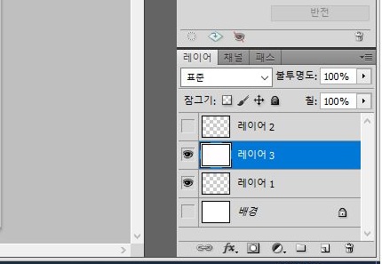 중간에 레이어를 하나 만들어 주어서 배경을 채워주는 것이 어떻까 하는 생각을 먼저 해 보았습니다. 그냥 레이어 옆에 있는 눈을 가리는 것으로는 원이 없어지지 않았습니다.
