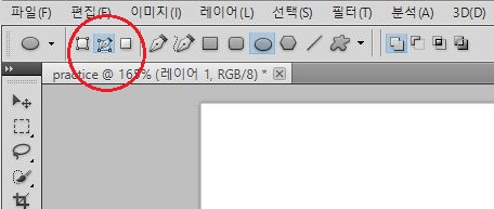 그래서 원래라면 추가되는 모양의 도형이 있는 레이어 대신, 위에다가 하나 더 레이어를 추가시켜 보도록 합니다. 다시한번 말하지만, 여기서는 레이어 1에 아까 그렸던 원이 있습니다.