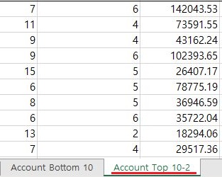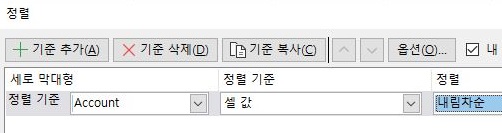 다음으로 해야 하는 것은 이렇게 가기고 온 데이터를 가지고서 한번 작업을 하기 위해서 내림차순으로 정렬을 해주는 것인데, 여기서 중요한 것은 Account라고 최종적으로 나온 계좌를 바탕으로 지정했습니다.