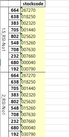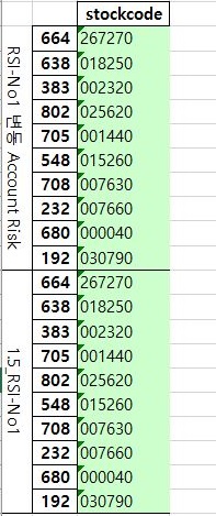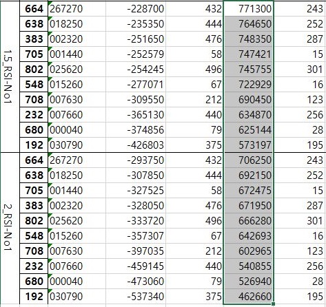 이번 포스팅에서는 지난번 포스팅에서 이야기를 했던 것 대로 일단 손해에 대해서 이야기를 하고자 합니다. 일단 여기서는 1번 매도/매수 룰인 RSI지수를 기반으로 한 가장 널널한 조건에서 나오는 결과인데, 여기서 손해를 가장 많이 본 10개의 종목을 가지고서 유의차가 있는지 T 검정을 해서 알아봐야 합니다.