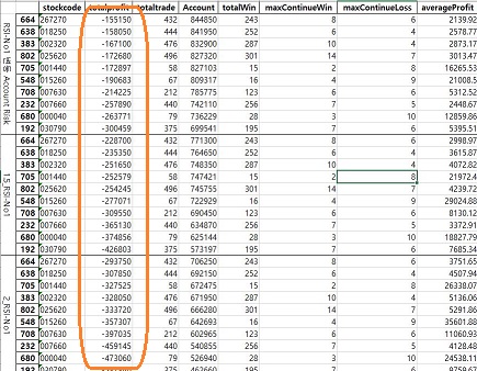먼저 해야 하는 일로는 1%, 1.5%, 2%의 리스크를 감당해서 나온 손해를 본 종목들을 일단 가지고 오도록 합니다. 여기서 일단 확인이 가능한 것으로는 profit이 모두 마이너스인 것을 가장 먼저 확인할 수 있습니다.