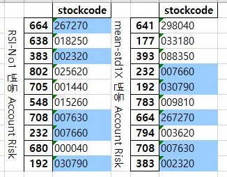 그래서 2번째 매도/매수 룰에 대해서는 일단 살펴보도록 하는데, 여기서는 일단 5개 종목만이 겹치지 않는 것을 확인할 수 있었습니다.