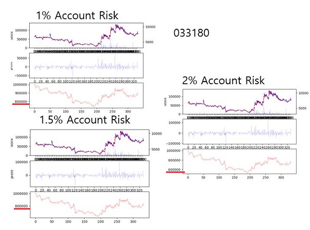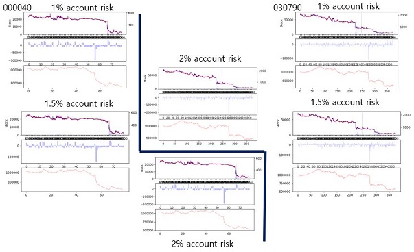결국 10개의 종목을 다 살펴보니, 이렇게 전부 Account가 변하는 패턴은 같은데, 그 낙폭만이 감당하는 리스크가 커지면 커질수록 점점 더 올라가는 것을 확인할 수 있었습니다.