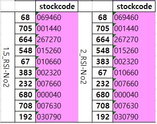 그리고 나서 1.5%와 2%를 한번 작업해서 한번 나오는 결과를 보자, 여기서도 모든 종목이 일치하는 것을 확인할 수 있었습니다.