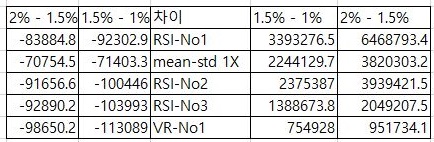 먼저 작업을 하려고 하는 것은 이번엔느 2% 리스크를 감당했을 경우에 나온 손해를 가장 많이 본 종목에 대해서 한번 유의차 검정을 각 매도/매수 룰 별로 실행하고자 합니다.