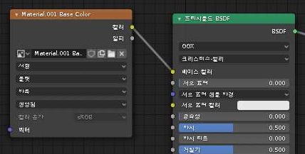 그래서 먼저 해야 하는 일로는 세이딩 윈도우에 가면, 아무것도 나와 있지 않아서 새로 추가해 주는 것을 해서, 베이스 컬러 항목에 연결해야 했습니다.