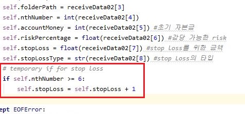 일단 리스크를 2%로 주도록 하고, 그 다음으로는 자본금을 1000000으로 주도록 합니다. 그렇게 한 다음에 손절매를 기본으로 3%로 주고 시작을 하도록 합니다.