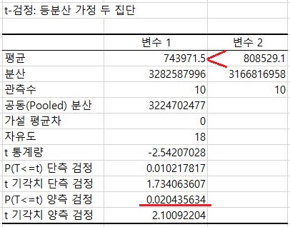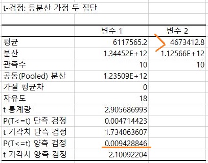 그리고 나서 다음으로 볼 수 있는 것으로는 위 스크린샷에서 볼 수 있는 것처럼 일단 T 검정 결과로 우선 유의차 있게 2번 매도/매수 룰에서 손해를 덜 보았다는 것을 볼 수 있습니다.