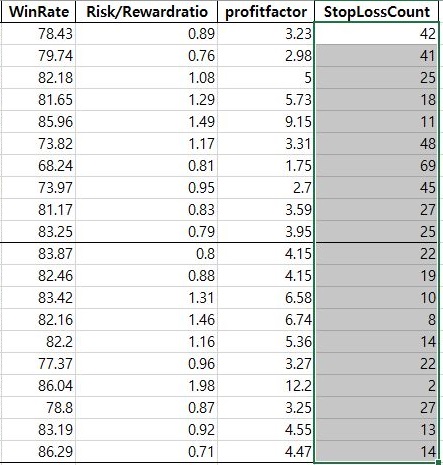 이 다음에는 손절매 횟수에 어떤 영향을 주었는지 한번 알아보는 시간을 가져 보고자 합니다. 여기서는 일단 2%와 3% 조건에서 어떤 차이가 나오는지 보도록 합니다.