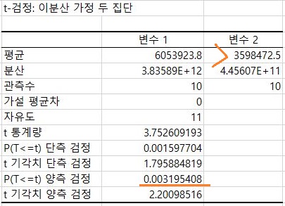 일단 유의차 검정을 위해서 T 검정을 받아본 결과는 위 스크린샷과 같이 유의차가 있게 2%보다 3%에서 손절매 횟수가 줄어들었다는 것을 확인할 수 있었습니다.