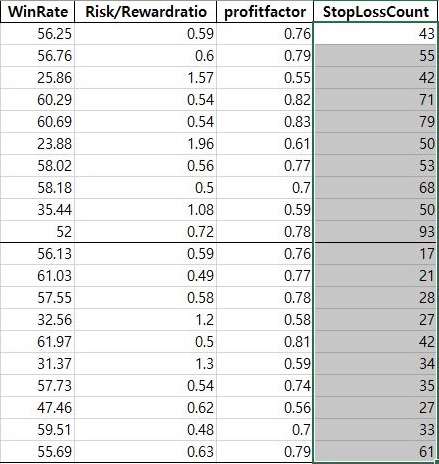 일단 여기서는 위 스크린샷에서 볼 수 있는 것처럼 우선 손절매 횟수를 2%와 3%를 두고서 어느쪽이 유의차 있게 증가 혹은 감소했는지 알아보고자 합니다.
