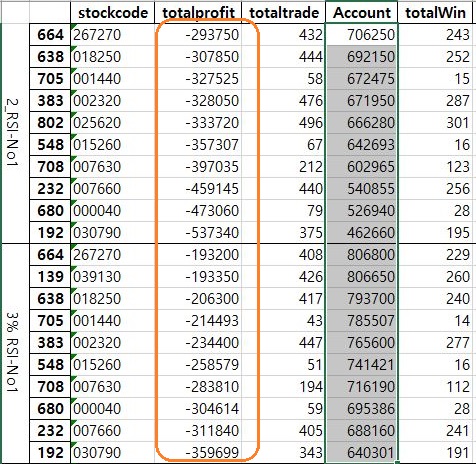 이번에는 손해를 본 종목끼리 3%와 4%의 조건에서 어떻게 해서 바뀌게 되었는지를 한번 살펴보고자 합니다. 일단 계좌 부분을 어떻게 가지고 가서, 작업을 하고자 합니다.