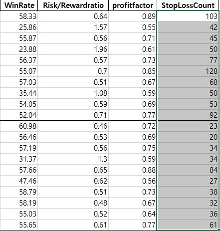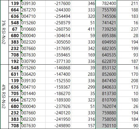 일단 여기서는 위 스크린샷에서 볼 수 있는 것처럼 2%와 3%에 대해서 한번 비교를 하기 위해서 준비를 해 보았습니다. 손절매 횟수를 대상으로 해서 한번 작업을 해보고자 하면.......