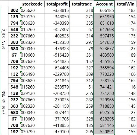 일단 4번째 매도/매수 룰에서 발생한 손해의 우위를 알아보기 위해서, 여기서도 역시 정리가 된 데이터를 기반으로 해서 일단 계좌를 기준으로 한번 작업을 해 보고자 합니다.